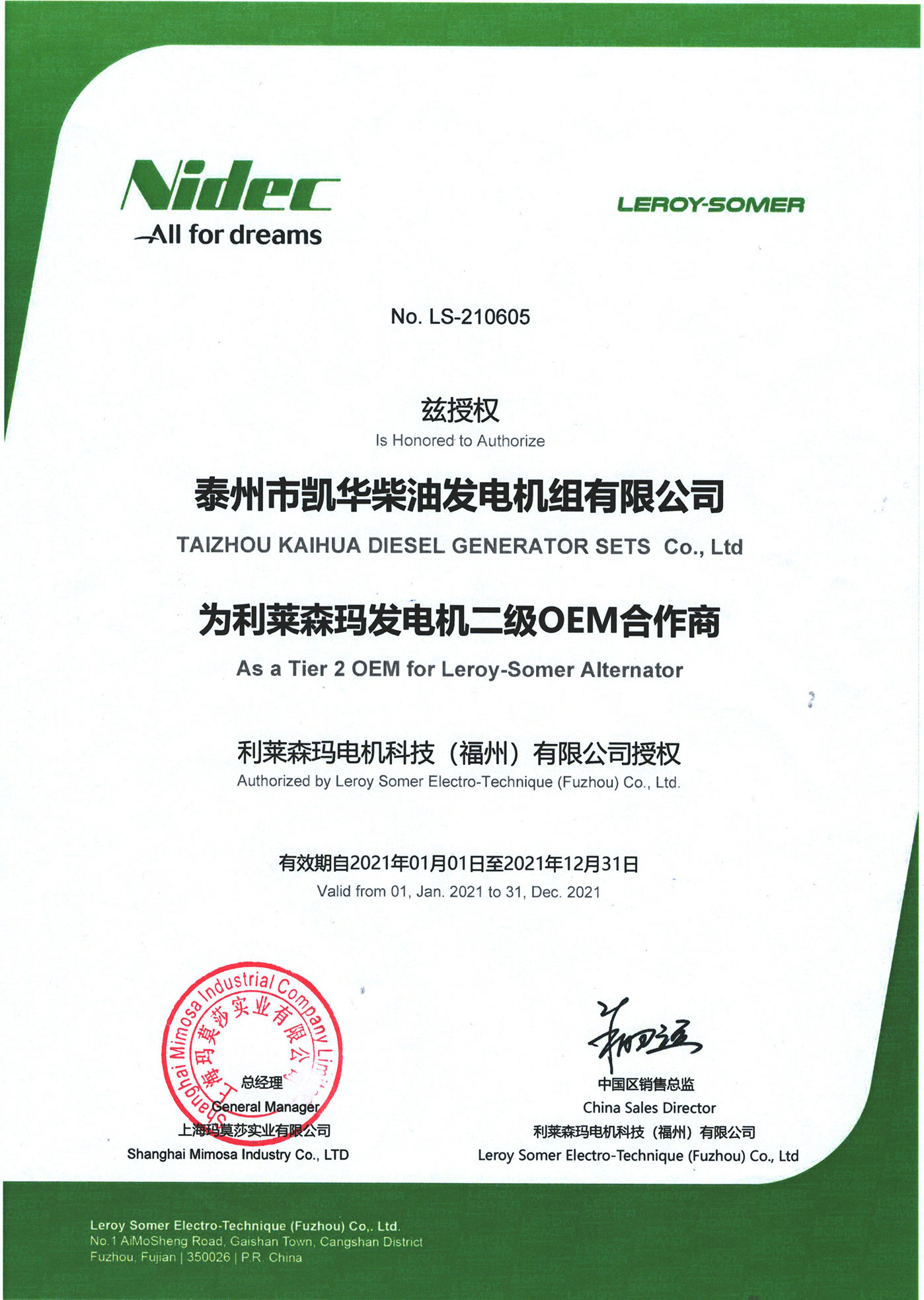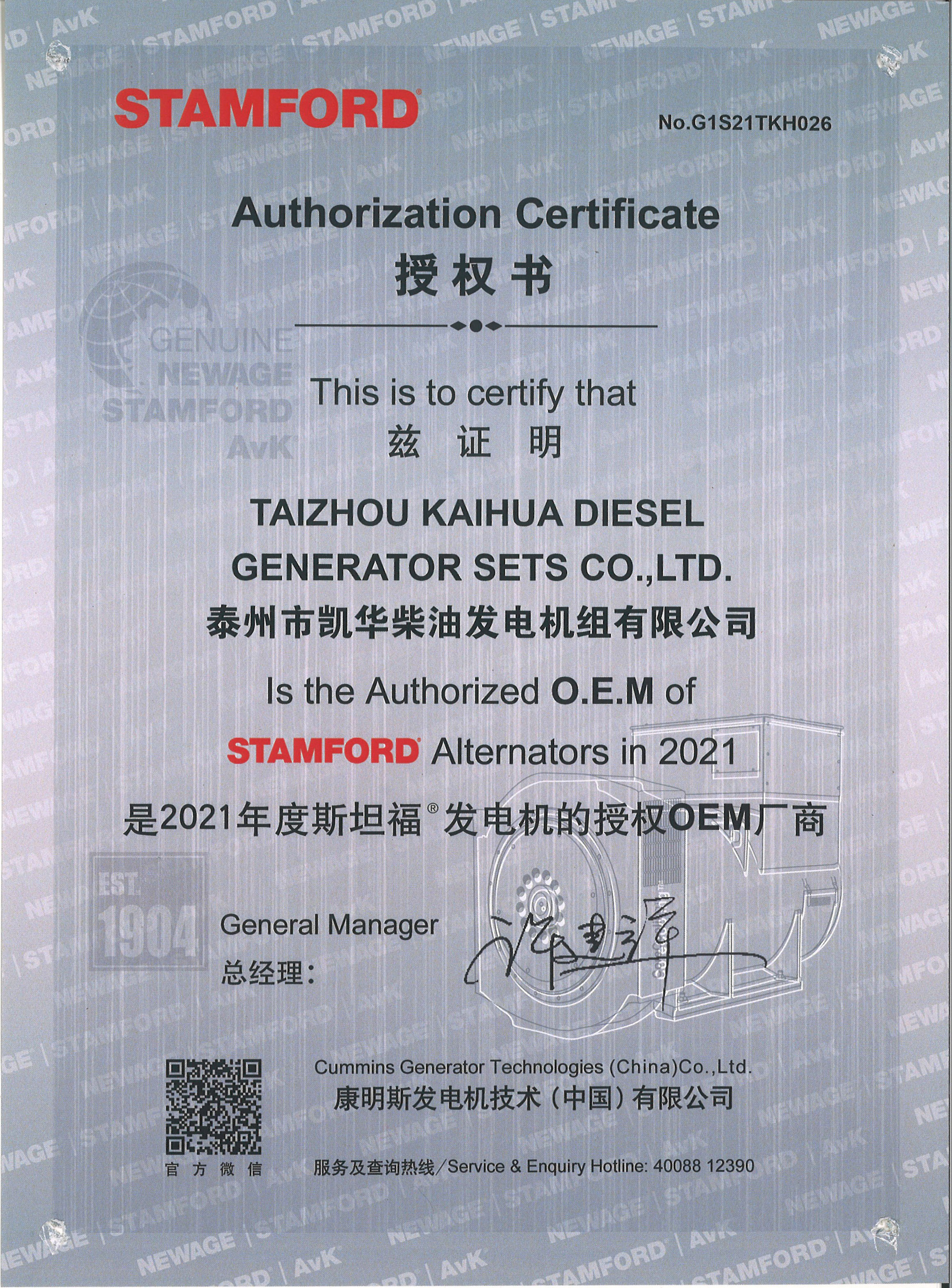 泰州市凱華柴油發(fā)電機(jī)組有限公司創(chuàng)建于2003年,是一家集柴油發(fā)電機(jī)組燃?xì)獍l(fā)電機(jī)組的研發(fā)、生產(chǎn)、銷售為一體的高新技術(shù)民營企業(yè),公司座落于“漢唐古郡,淮海名區(qū)”,具有“鳳凰城”美稱的祥泰之州——江蘇省泰州市,地處中國經(jīng)濟(jì)最發(fā)達(dá)的長三角經(jīng)濟(jì)圈,水陸空立體交通,地理位置十分優(yōu)越。公司目前注冊資本金11800萬元人民幣,生產(chǎn)基地占地六十畝,現(xiàn)有各類高素質(zhì)員工一百多名,專業(yè)技術(shù)人員達(dá)46人,其中高級技術(shù)人員16人,年銷售額近6億元。 公司主營產(chǎn)品:3~3000KW陸用柴油發(fā)電機(jī)組,15~600KW移動拖車電站,12~1000KW船用應(yīng)急柴油發(fā)電機(jī)組,各種靜音型、中高壓、多機(jī)并聯(lián)、燃?xì)獾忍胤N機(jī)組以及進(jìn)口系列柴油發(fā)電機(jī)組,可滿足不同客戶的一切電力需求,還可滿足用戶不同電壓、不同頻率的要求。凱華公司是康明斯品牌的授權(quán)代理商,專業(yè)生產(chǎn)供應(yīng)康明斯柴油發(fā)電機(jī)組。